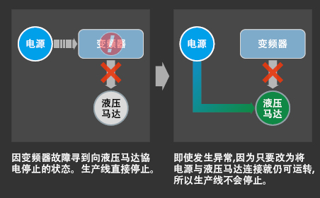 由于以可靠的NSP液压泵站为基础,所以,即使变频器发生故障NSP液压泵站也会正常的进行运转,而不会停止生产线。