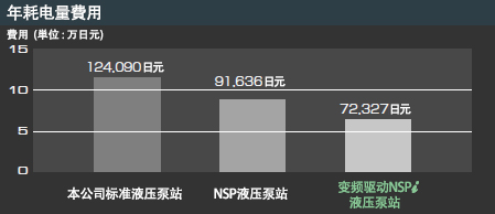 与本公司标准液压泵站相比,NSP液压泵站降低约25%、变频器驱动NSP液压泵站降低约40%的电费。